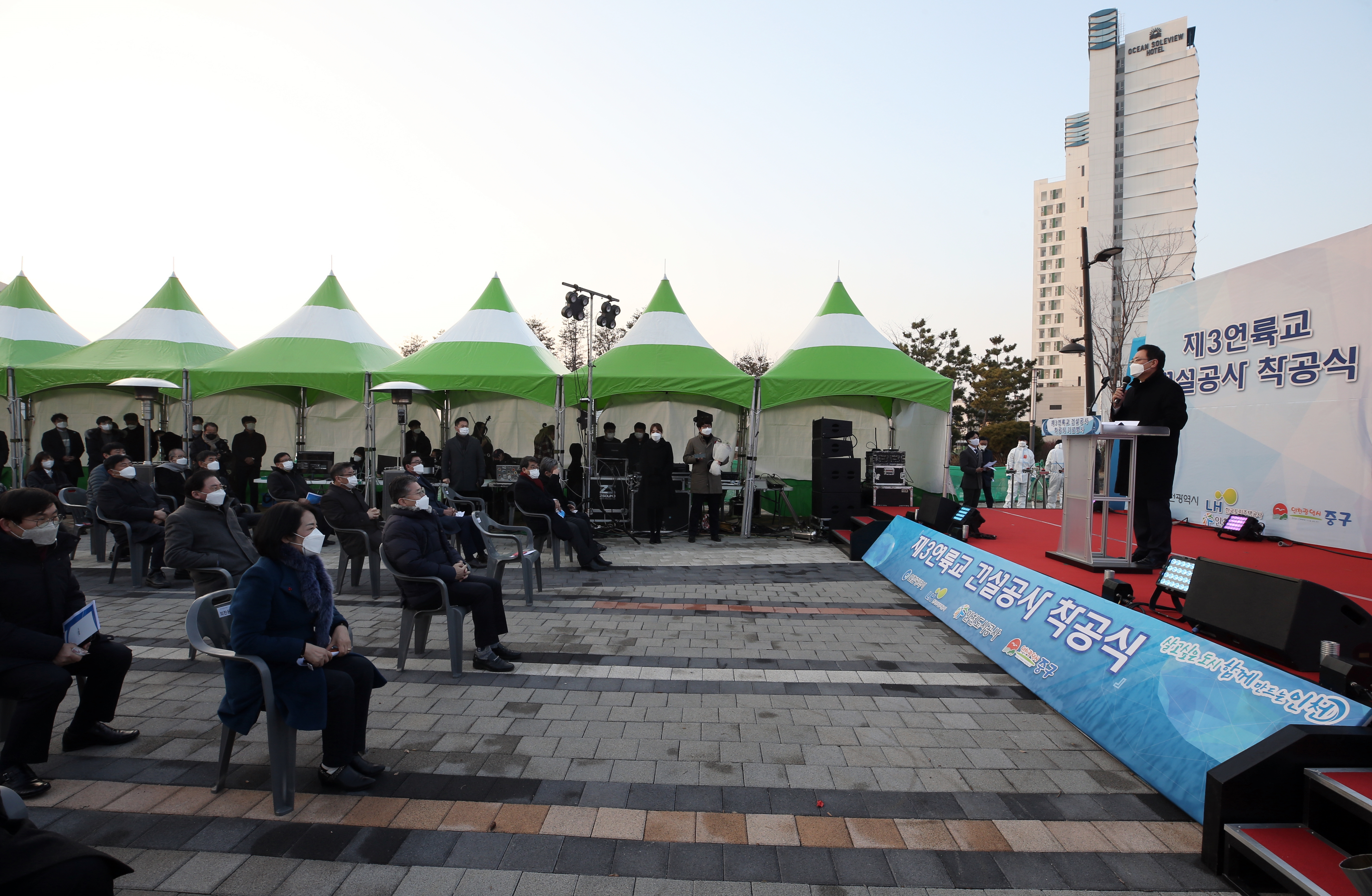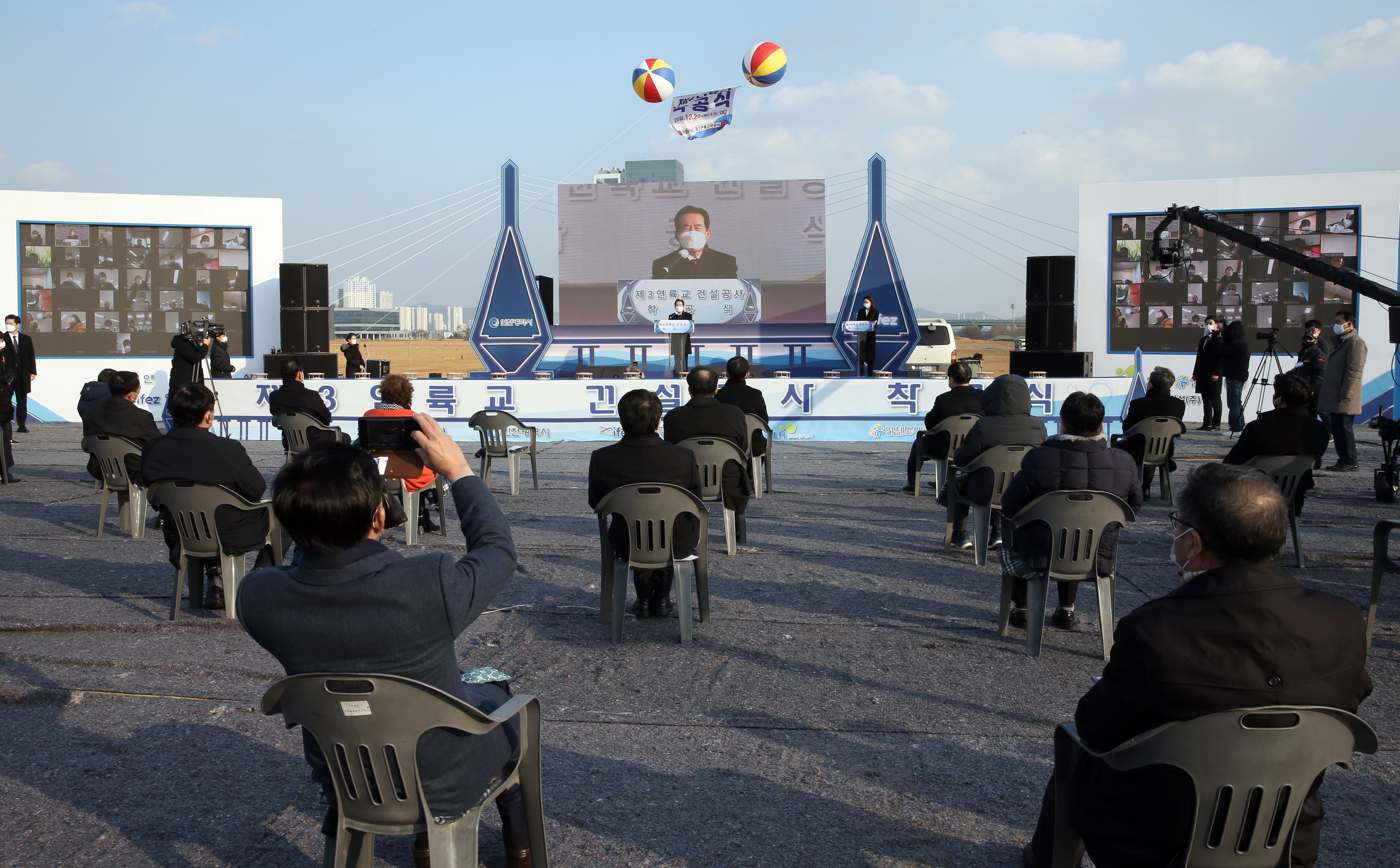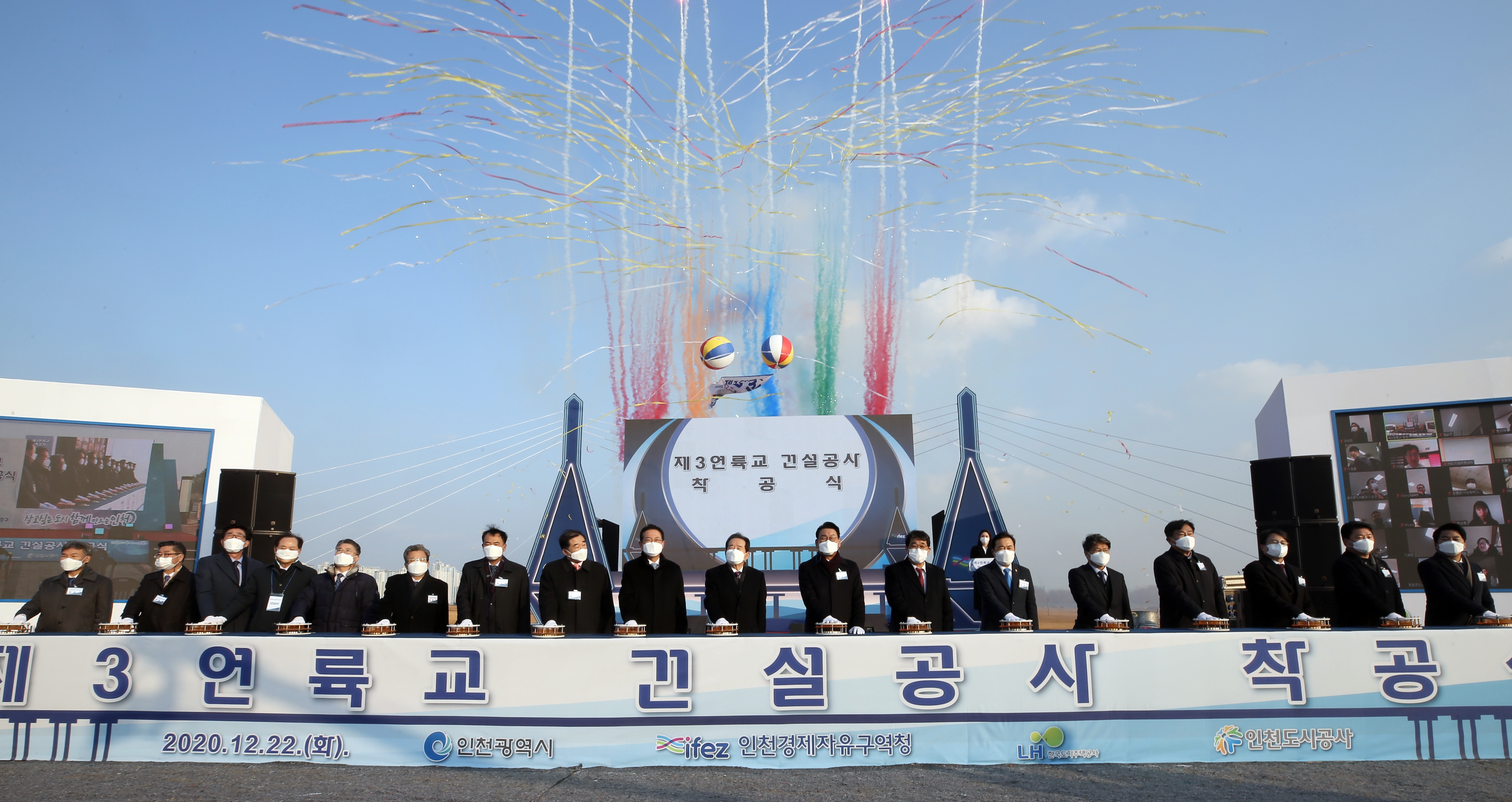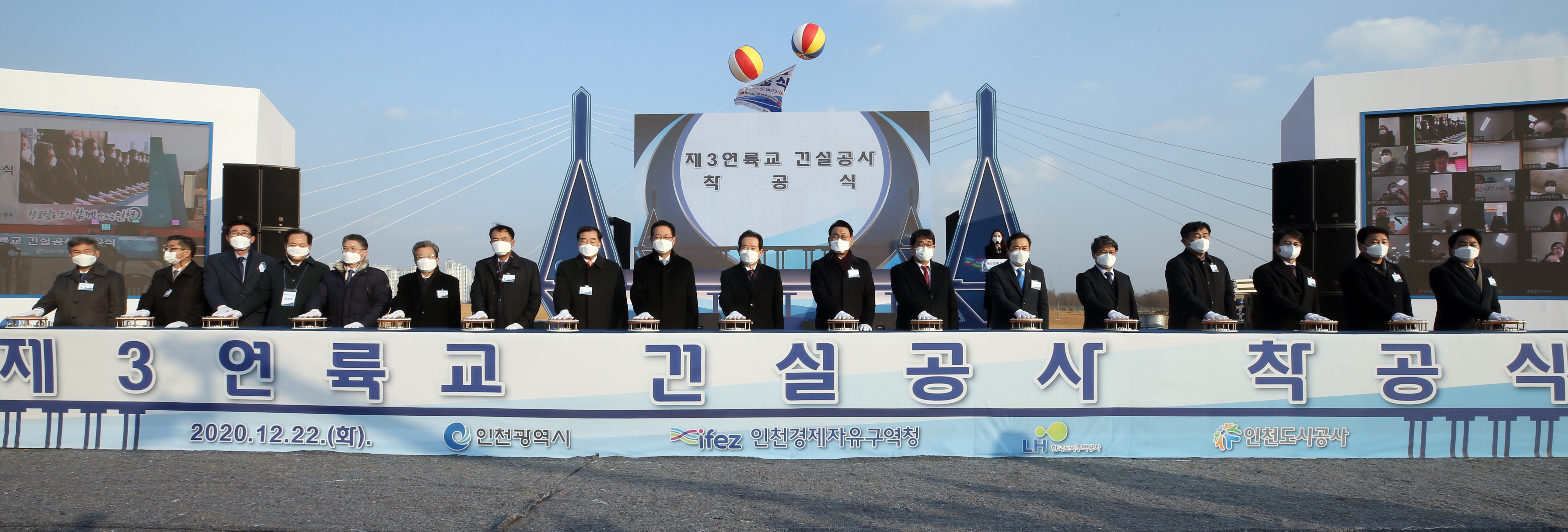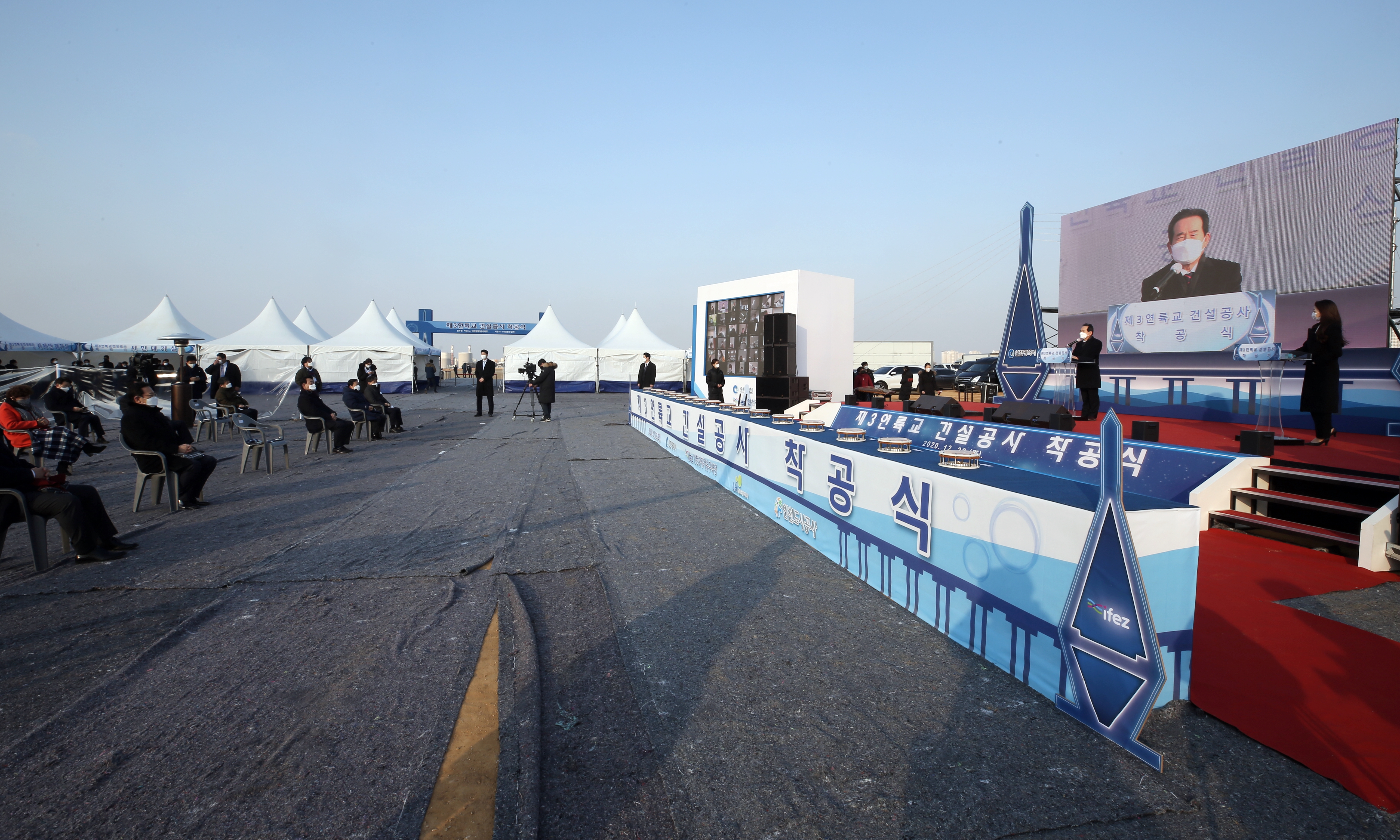 On Tuesday, December 22, 2020, IFEZ held the groundbreaking ceremony for Cheongna Sky Bridge (formerly the Third Link Bridge). Prime Minister Chung Sye-kyun, Incheon Mayor Park Nam-chun, and IFEZ Commissioner Lee Won-jae attended the ceremony. In accordance with COVID-19 prevention guidelines, attendance was kept to a minimum, and the event was broadcast live online via YouTube. Cheongna Sky Bridge (Third Link Bridge) will connect Jungsan-dong, Jung-gu to Cheongna-dong, Seo-gu, with a total length of 4.67 km (3.5 km over water, 1.1 km on land), a width of 29–30 m, and six lanes. The bridge is scheduled for completion in 2025. Among the three bridges connecting Yeongjong International City, this bridge will be the only one with pedestrian and bicycle paths and an observation deck, creating a tourist-friendly cultural space where visitors can enjoy the sea and scenic views.