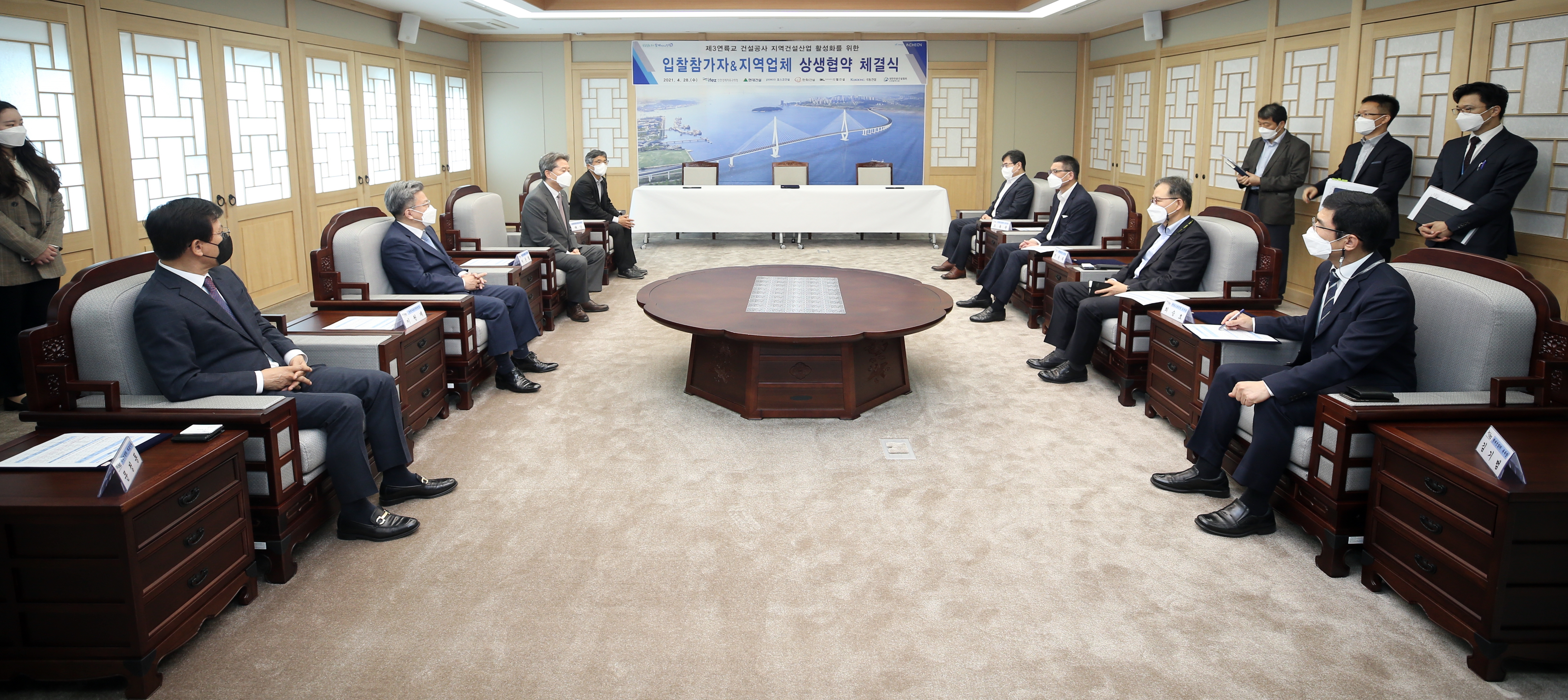 Signing of a Win-Win Cooperation Agreement Between Bidders and Local Construction Companies for the Cheongna Sky Bridge (Third Link Bridge)