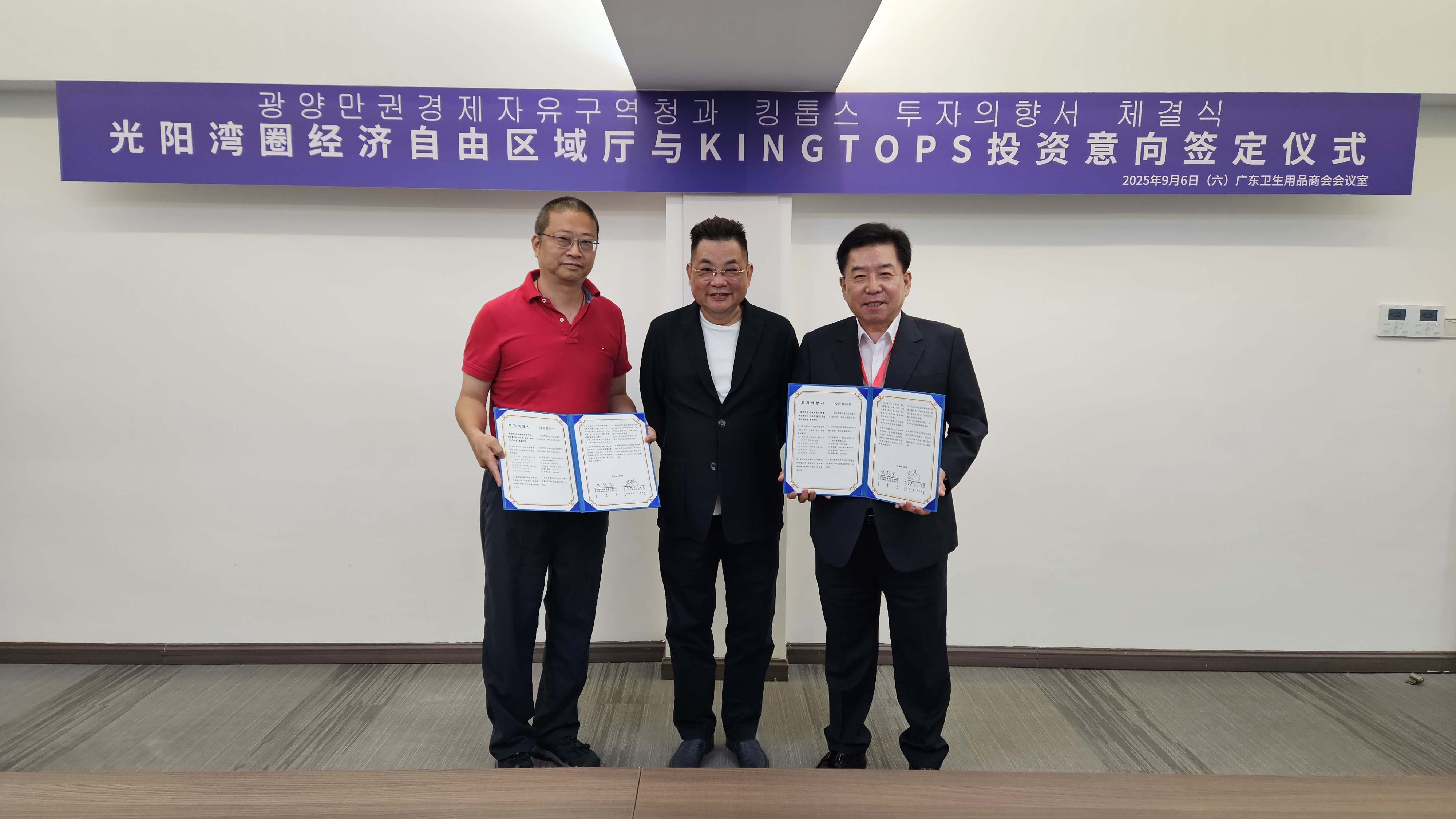 광양만권경제자유구역청(청장 구충곤, 이하 광양경자청)은 9월 6일, 중국 광둥성 위생용품협회를 방문하여 협력 관계를 구축하고, 광양만권에 입주한 외투기업 킹톱스(KINGTOPS)와 증설 투자협약을 체결했다고 밝혔다.